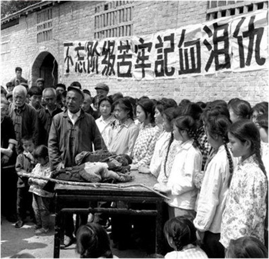农民在给学生做“忆苦思甜”报告(网路图片)。